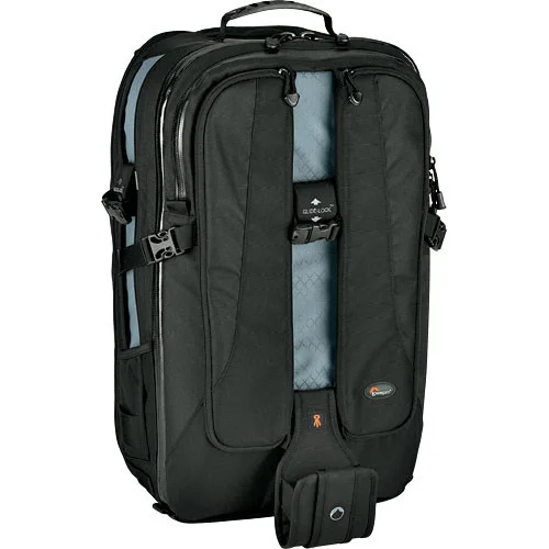 This is a really great backpack that we use to travel with on airplanes as well as to shoot locations where big black cases would be too intimidating. We can fit 2 cameras, a select number of lenses and some audio gear as well. It can hold more gear than you think! It has a rain cover and water-resistant zippers. This is a nice case option for a one-man-band scenario.